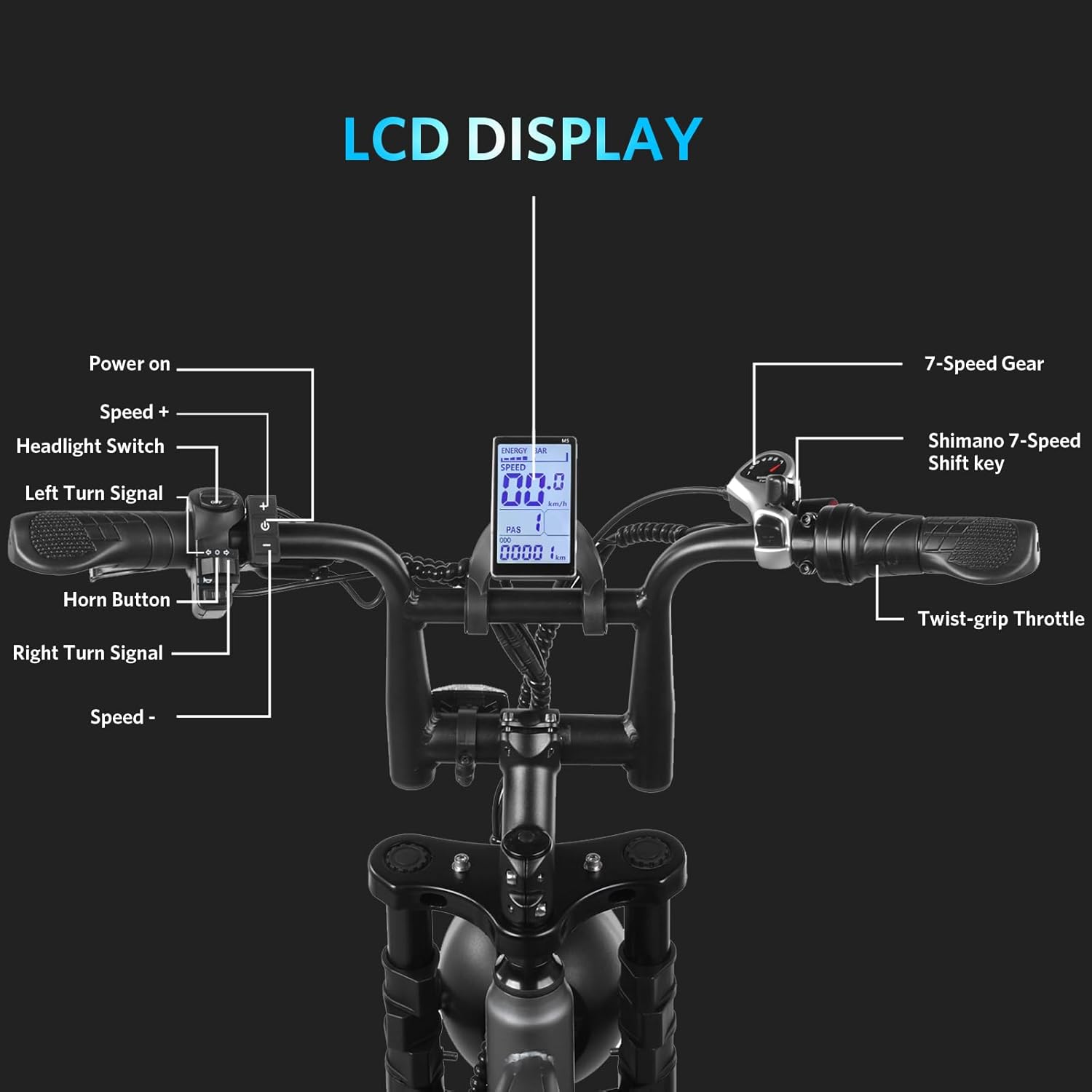 - 🚲Bicicletas eléctricas rápidas: La OUXI V8 e-bike tiene una velocidad máxima de 31 mph (50 km/h), mientras que la e-bike está equipada con KENDA20''*4.0 neumáticos de grasa, que aumentan el área de contacto con el suelo para una conducción más suave y más suave, y usted puede conquistar fácilmente cualquier terreno