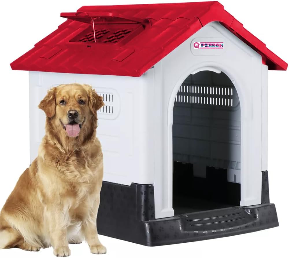 - Techo impermeable, el techo inclinado es impermeable y resistente a la lluvia, para evitar que su perro se moje.