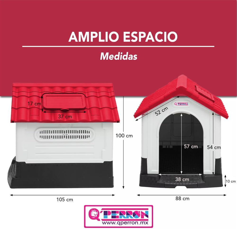 - Medidas generales 105 X 88 X 99 Cm - Acceso puerta 57 X 38 Cm - Ventana en el techo 37 X 17 Cm.