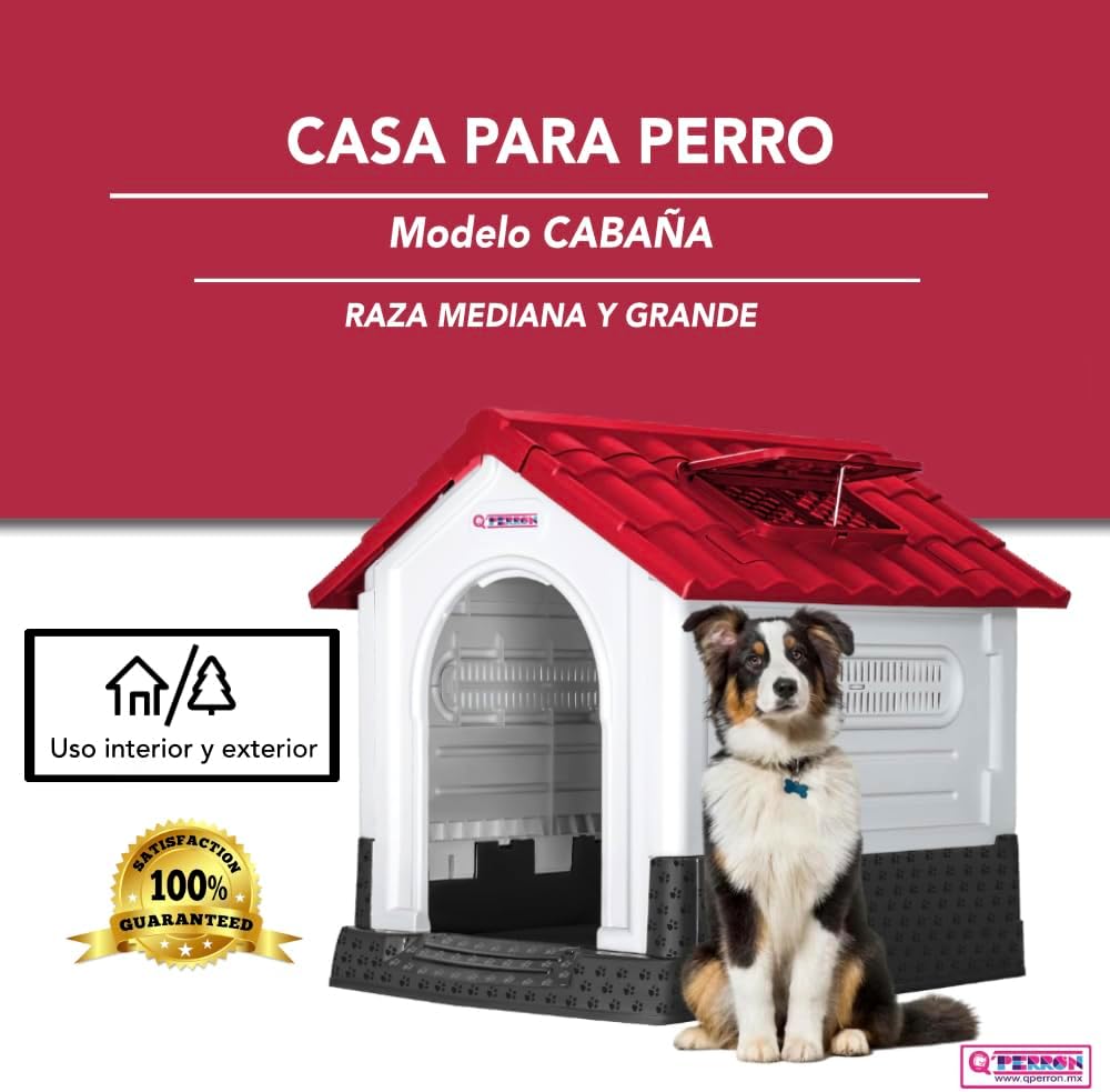 - Casa para perros grande, modelo Cabaña, color Rojo.